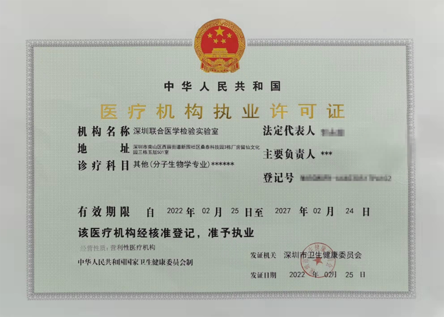 2022年2月25日,9888拉斯维加斯凭借前瞻的发展方向、雄厚的研发实力、先进的仪器设备和完善的管理制度,顺利通过卫健委评审和验收,并获批《医疗机构执业许可证》,标志9888拉斯维加斯迈出医检服务的重要一步,也将进一步扩展9888拉斯维加斯医检服务范围,促进9888拉斯维加斯服务能力的提升。
