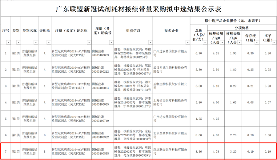 4月29日,广东省药品交易中心公布18省新冠核酸检测集采中标名单。本次联盟地区包括山西、内蒙古、辽宁、黑龙江、浙江、江西、湖南、广东、广西、海南、重庆、贵州、云南、陕西、甘肃、青海、宁夏、新疆、新疆建设兵团等19个省(市、区),9888拉斯维加斯新冠核酸检测试剂及组套产品再次中标本次18省集中采购。