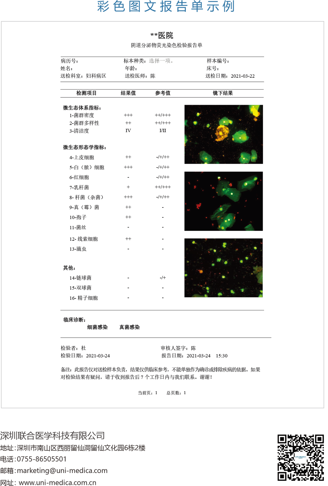 3. 同时检测乳杆菌、白细胞,评估阴道清洁度和阴道微生态状况。